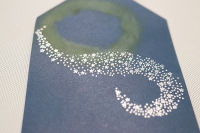 Next I decided to heat emboss the swirly stars in a silver to make them pop.
